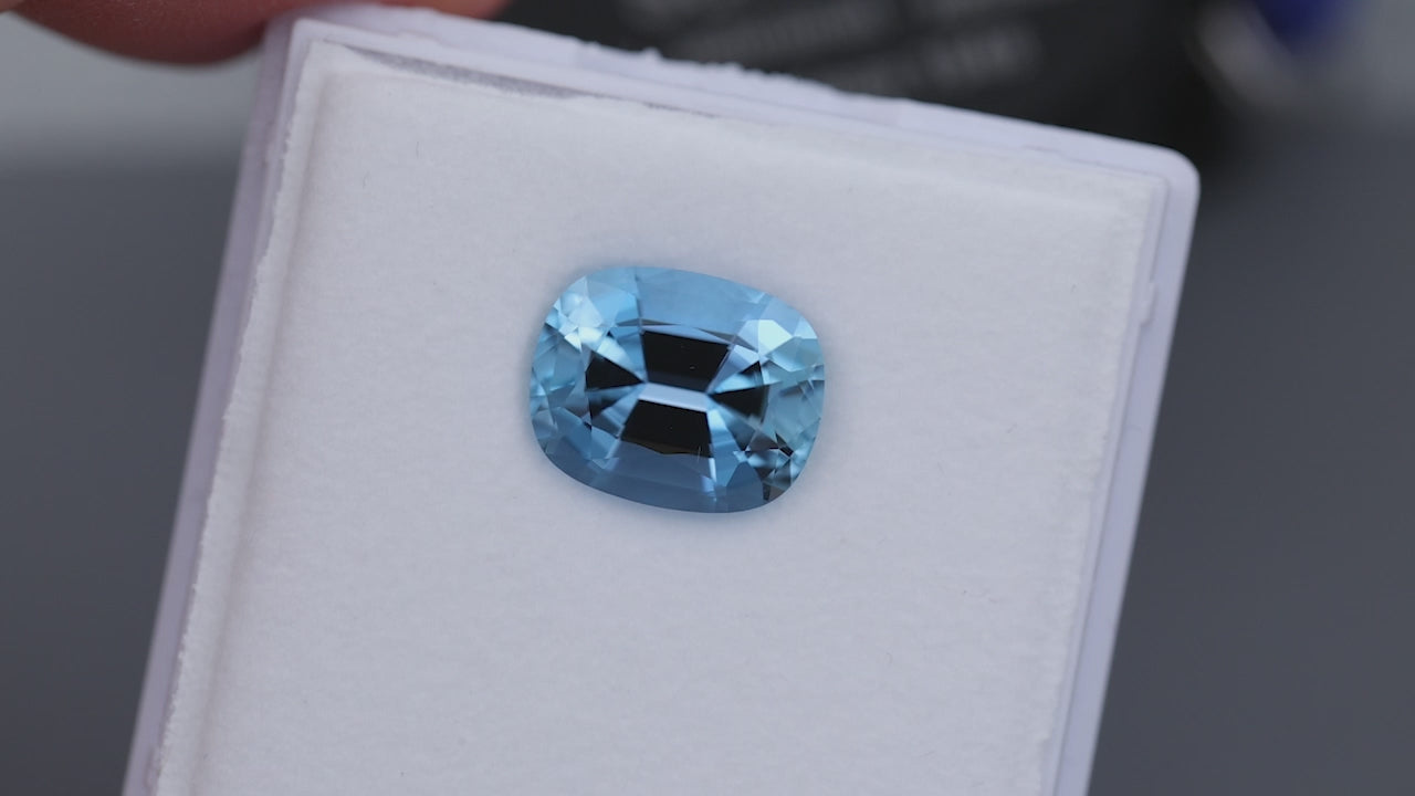 Ein beeindruckender Aquamarin aus Mosambik mit einem hochwertigen Kissenschliff und einer exquisiten Farbe.
