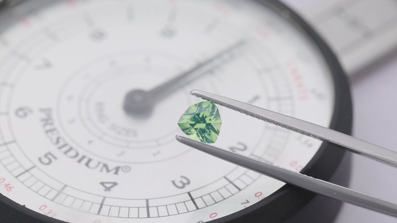 Ein interessanter grüner Saphir-Trilliant aus Gombe, Nigeria, unbehandelt.