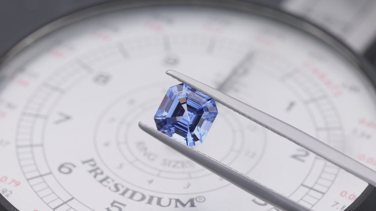 Ein blauer Saphir im Asscherschliff aus Madagaskar. Mittelblauer, sehr schöner Stein.