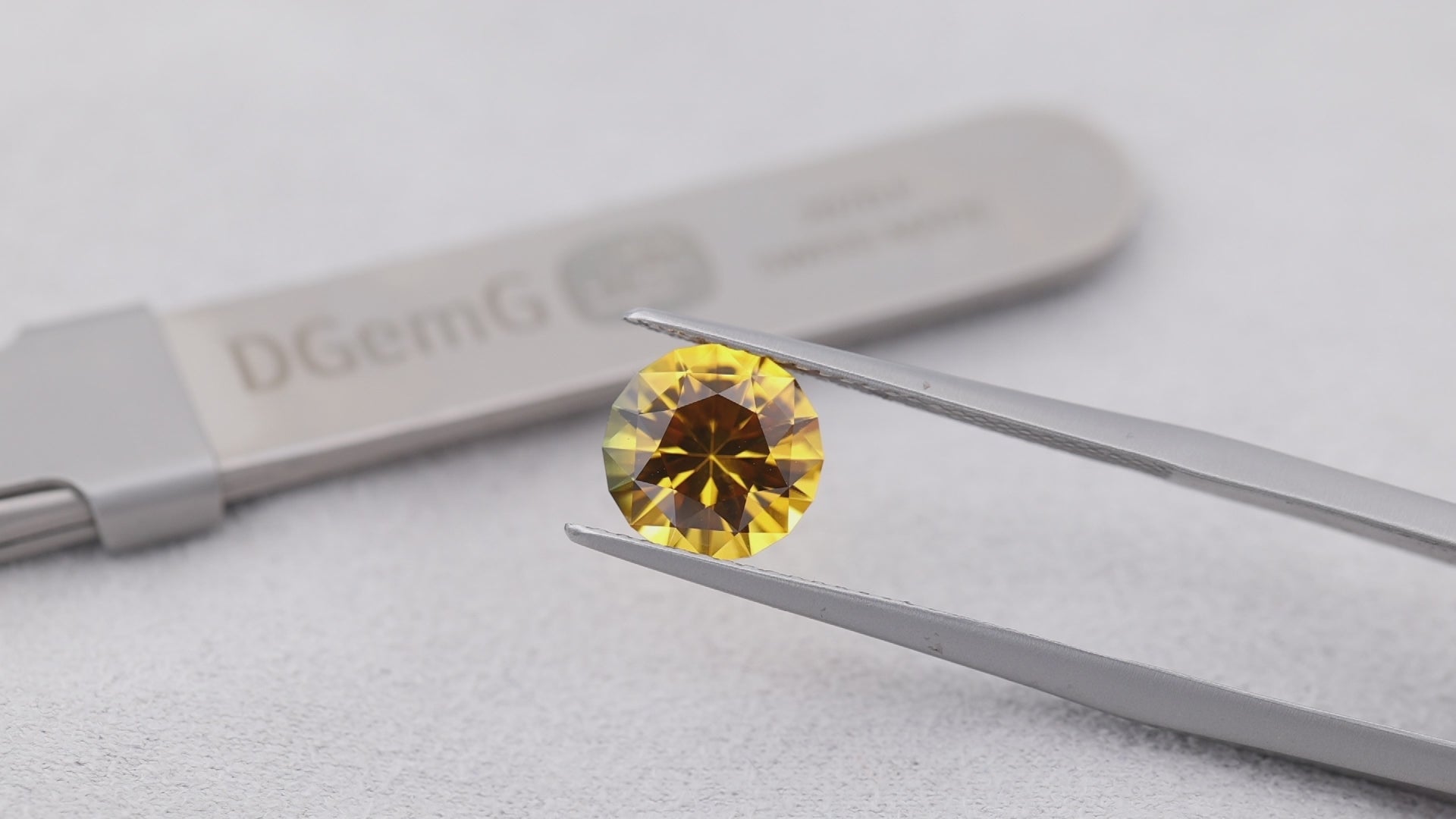 Ein einzigartig gefärbter, leuchtend orangefarbener Saphir, präzisionsgeschliffen im Brilliantschliff.