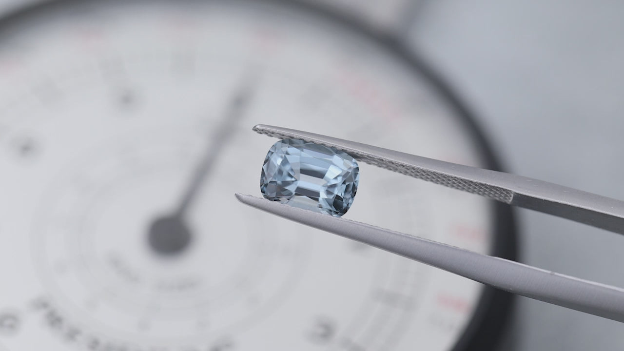 Ein eleganter grauer Spinell aus Mosambik, meisterhaft in unser klassisches Kissen geschliffen.
