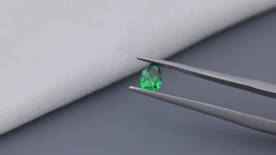 Ein perfekter chromgrüner Tsavorit aus Kleinbergbau in Voi, Kenia. In einem modernen Tropfenschliff geschliffen.