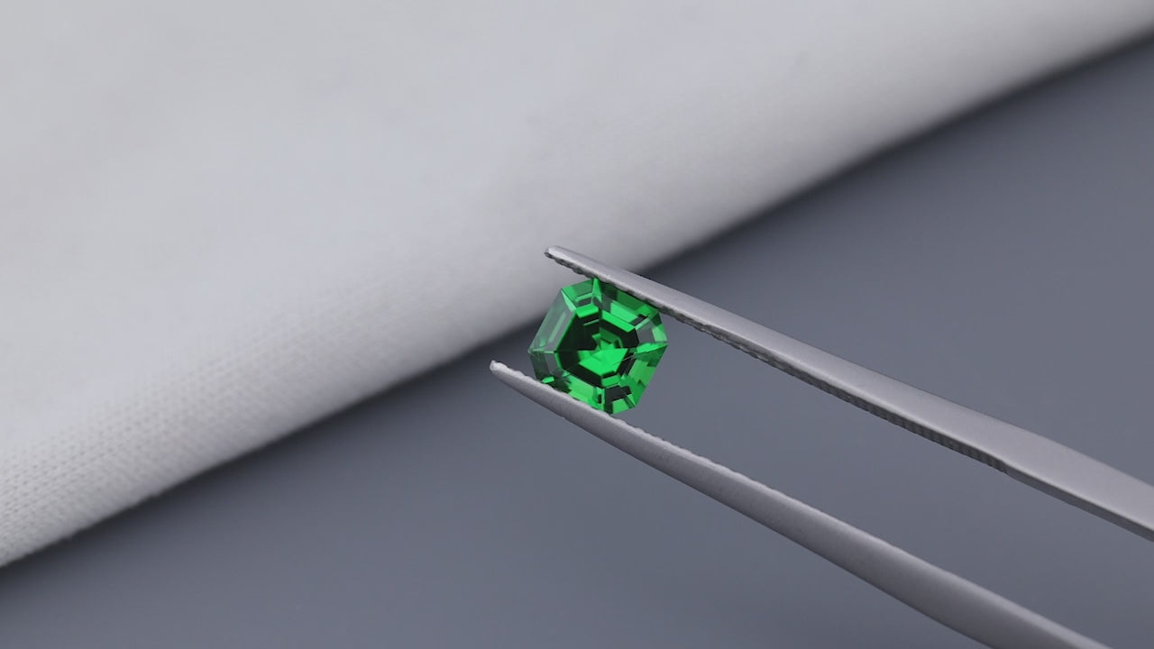 Ein feiner Tsavorit im Asscher Schliff aus Kleinbergbau in Kenia.