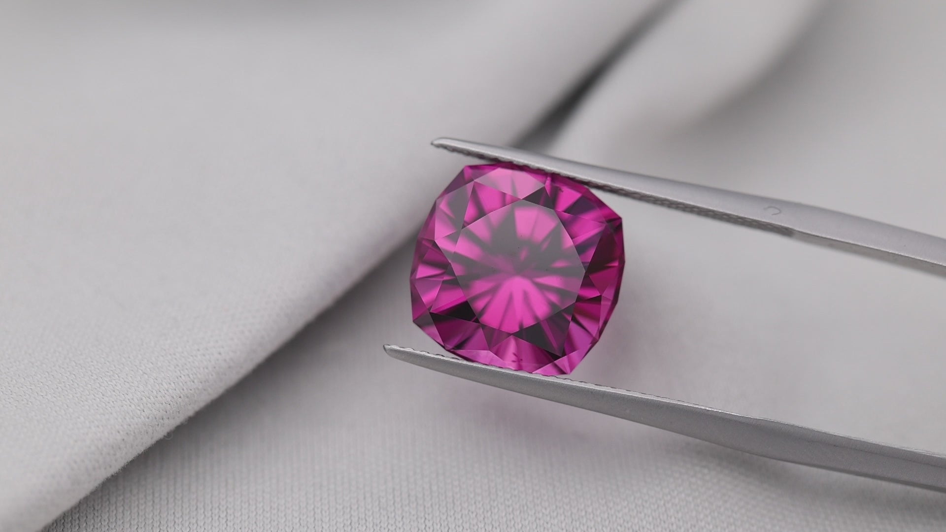 A well-sized precision cut garnet of beautiful color from Tanga, Tanzania, cut in our contemporary cushion design and displaying exceptional brilliance.