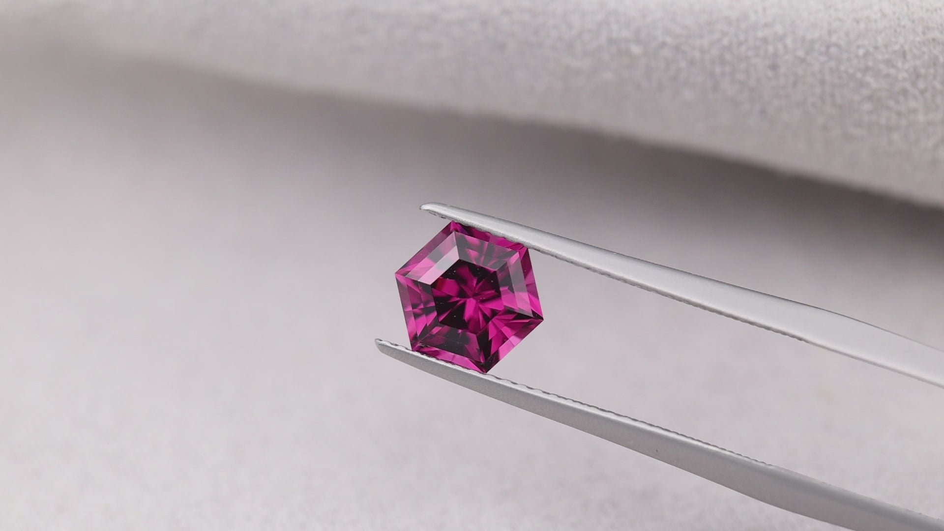 A fine rhodolite-type garnet from the 2024 find in Tanga, Tanzania, bright and brilliant.