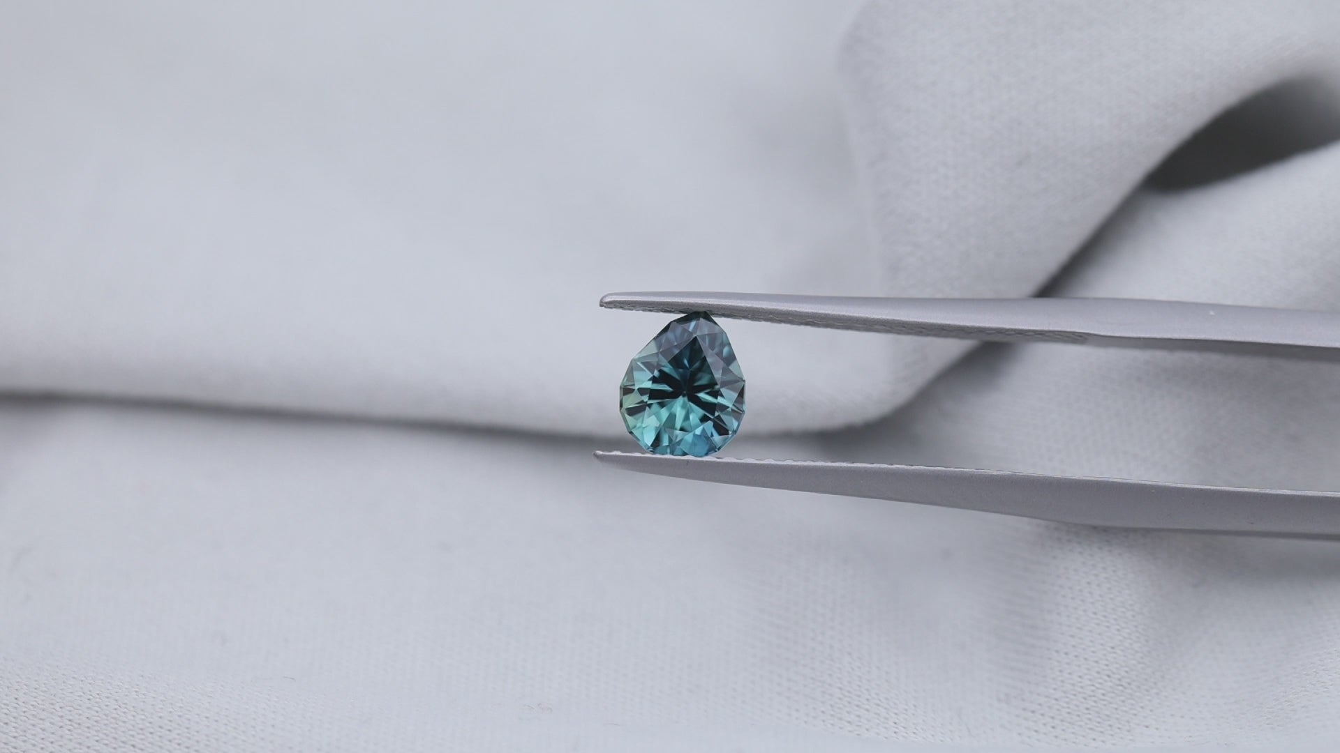 A fine teal sapphire from small scale mining in northern Madagascar.