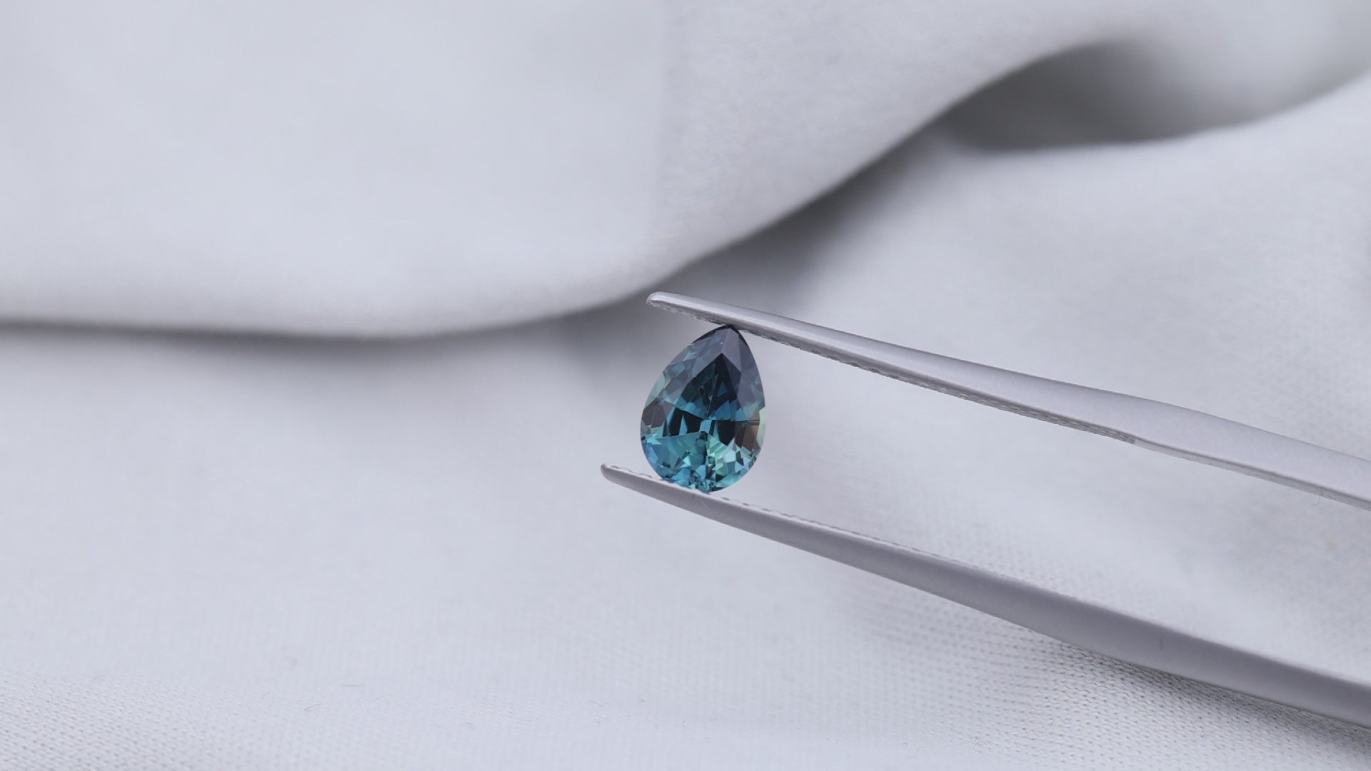 A perfect teal sapphire, cut in our classic pear design. This beautiful unheated gem originates from small-scale mining in northern Madagascar.