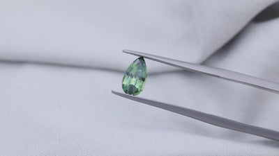 A fine unheated parti-colored sapphire, expertly cut into a traditional pear shape. Sourced from small-scale mining in northern Madagascar.
