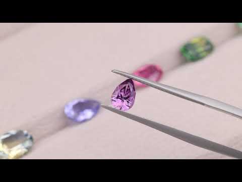 An amazing pinkish-purple sapphire sourced from small-scale mining in Madagascar, beautifully cut into a contemporary pear.