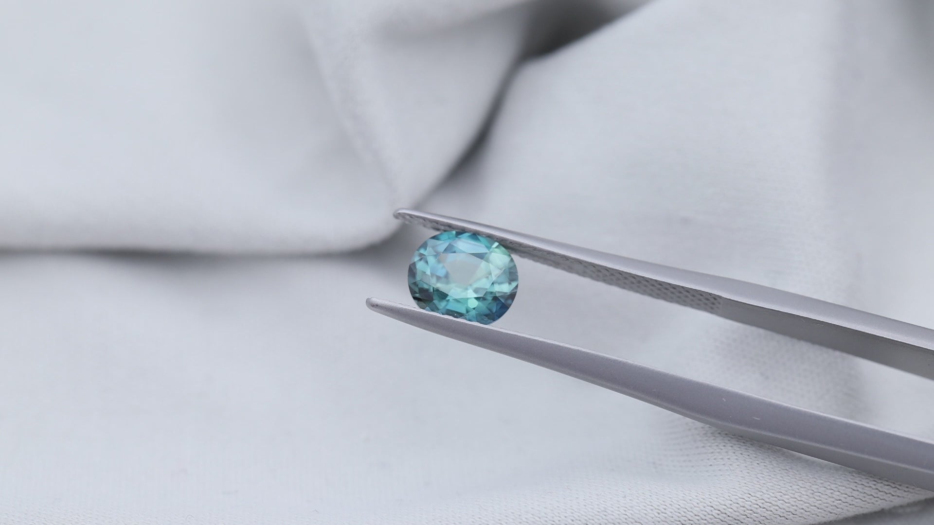 A fine teal sapphire from Madagascar, cut into our classic oval shape. The rough was purchased as unheated. However, since miners sometimes heat the rough themselves shortly after unearthing—and we cannot rule this out with certainty—we are offering it as heated. The stone is currently at the lab, and shipping may be delayed by a few days.