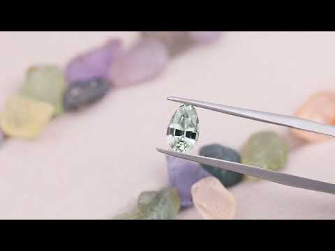 A minty green sapphire from small-scale mining in Madagascar, cut in our rounded pear (egg) design.