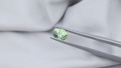 A fine green sapphire from Madagascar, cut into our contemporary oval. The rough was purchased as unheated. However, since miners sometimes heat the rough themselves shortly after unearthing—and we cannot rule this out with certainty—we are offering it as heated. The stone is currently at the lab, and shipping may be delayed by a few days.