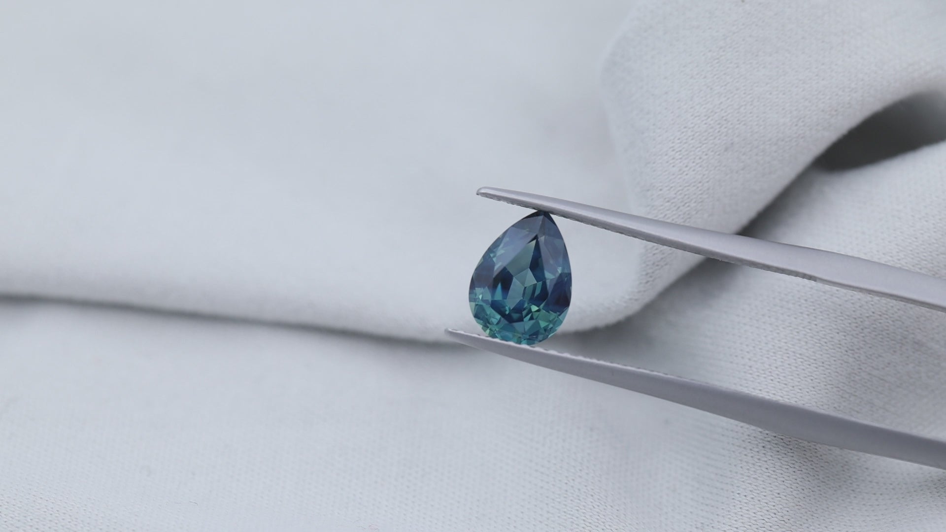 A fine, dreamy blue-green sapphire from small-scale mining in northern Madagascar, unheated and entirely natural.