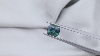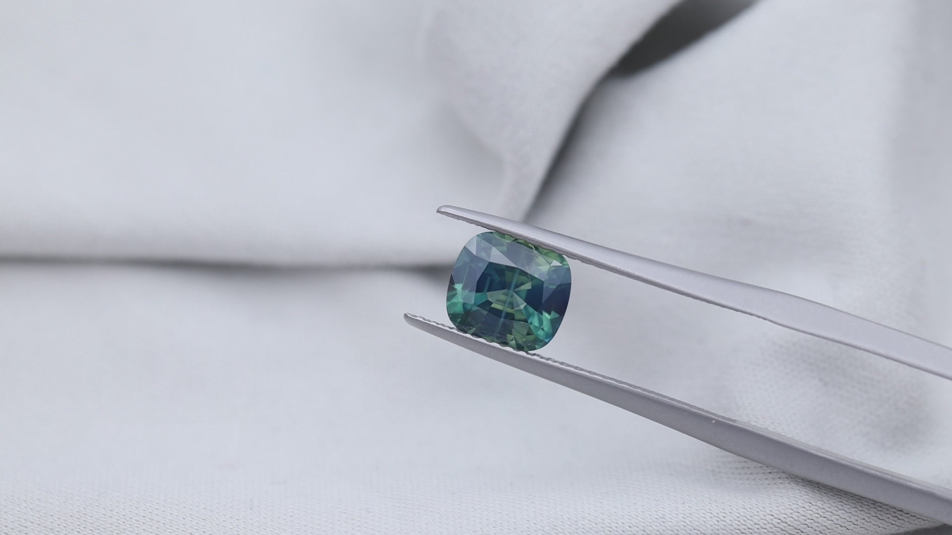 A fantastic, slightly sleepy parti sapphire from small-scale mining in northern Madagascar. It displays some beautiful minor natural inclusions—very visible in photos and videos, but far less noticeable in hand without a loupe.