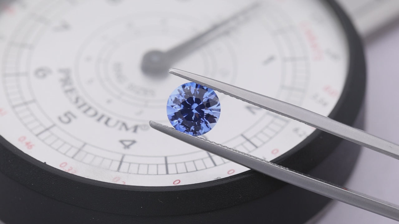A fine blue sapphire from Madagascar cut into a round brilliant.
