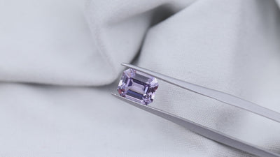 A fine pastel lavender sapphire from Madagascar, cut in our classic emerald cut. The rough was purchased as unheated. However, since miners sometimes heat the rough themselves shortly after unearthing, and we cannot rule this out to date, we are offering it as heated. It is currently at the lab, so shipping may be delayed by a few days.