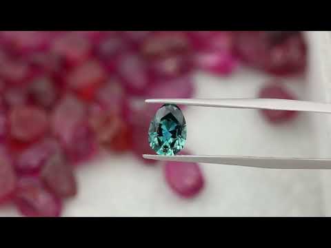 A fine, unheated teal sapphire from small scale mining in northern Madagascar, cut in our classic rounded pear—also known as the egg shape.