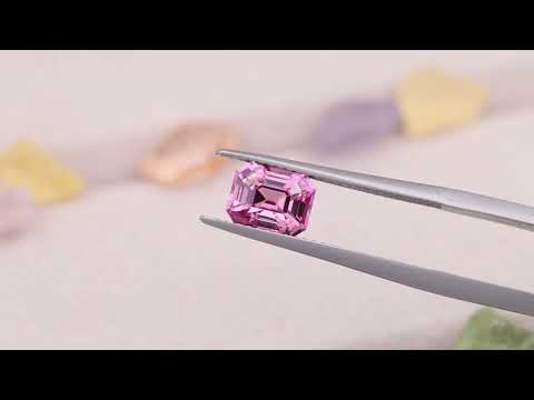 An unheated emerald-cut pink sapphire from Madagascar, with very minor purplish secondary hues.
