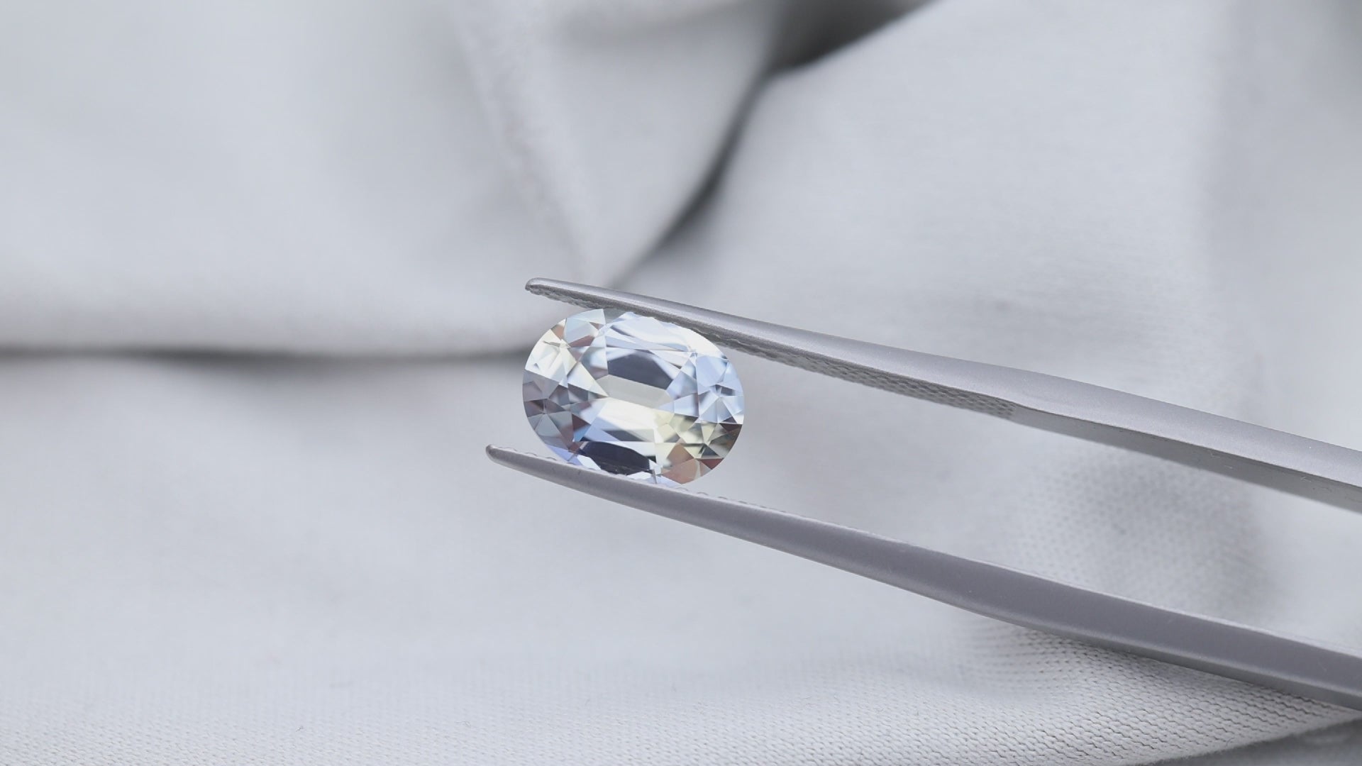 A fine bicolor sapphire from Madagascar, displaying light blue and light yellow tones. The rough was purchased as unheated. However, since miners sometimes heat the rough themselves shortly after unearthing—and we cannot rule this out with certainty—we are offering it as heated. The stone is currently at the lab, and shipping may be delayed by a few days.