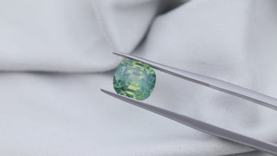 A fantastic, slightly sleepy green sapphire from small-scale mining in northern Madagascar. It has an impressive spread for its weight and displays some beautiful minor natural inclusions.