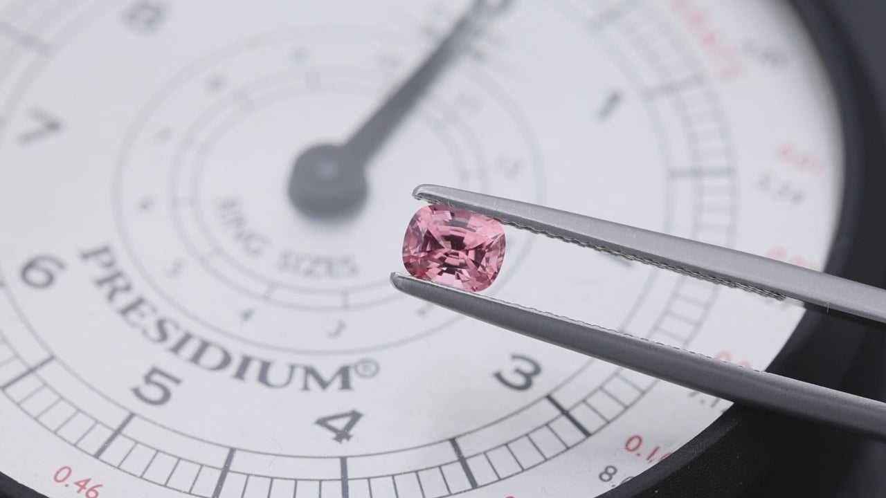 A finely cut salmon-pink spinel cushion from Mahenge, Tanzania.