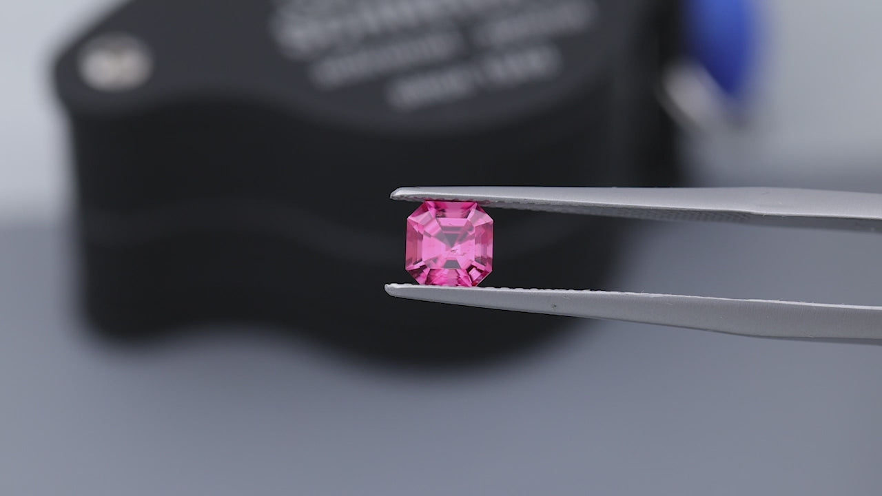 A neon reddish pink spinel from Luc Yen, Vietnam.