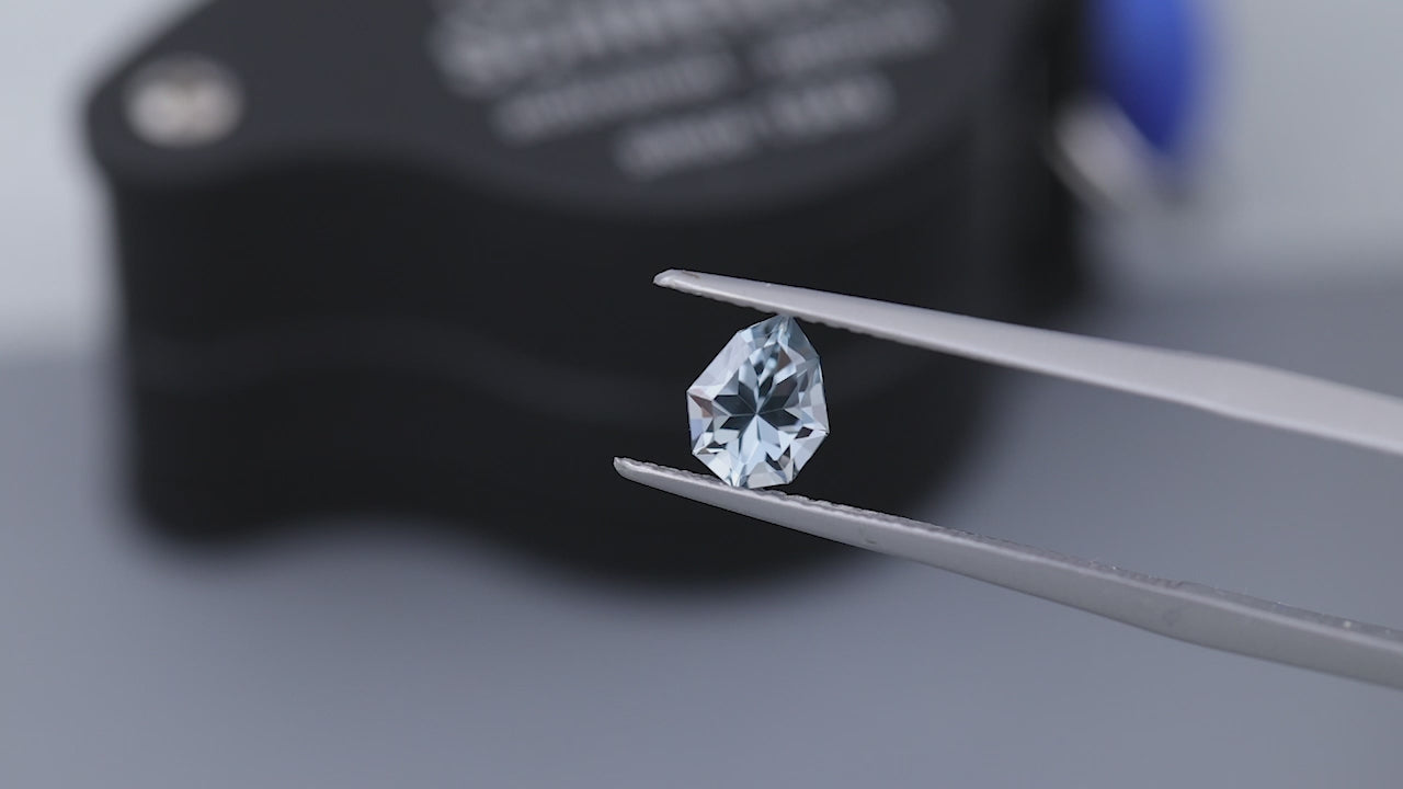 An elegant grey spinel from Mozambique, cut into our contemporary pear.