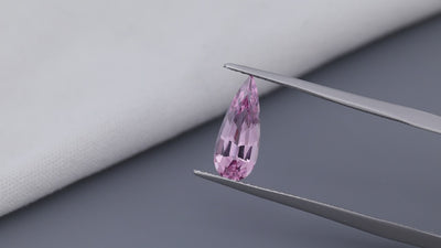 An amazing pink spinel from the mines in Luc Yen, Vietnam. Cut into an elongated pear. An outstanding gem.