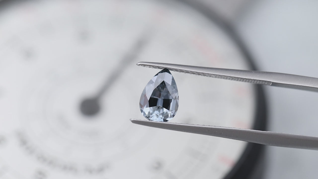 An elegant gray spinel from Mozambique, masterfully cut into our classic pear.