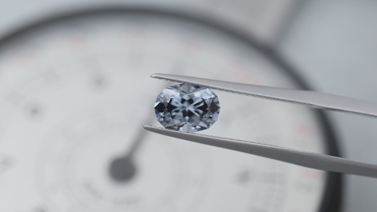 An elegant gray spinel from Mozambique, masterfully cut into our modern oval. Very brilliant.