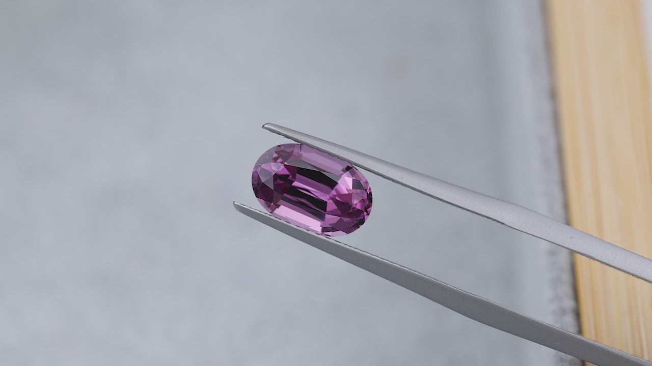 A berry-colored spinel from Luc Yen, Vietnam, cut into our classic oval shape.