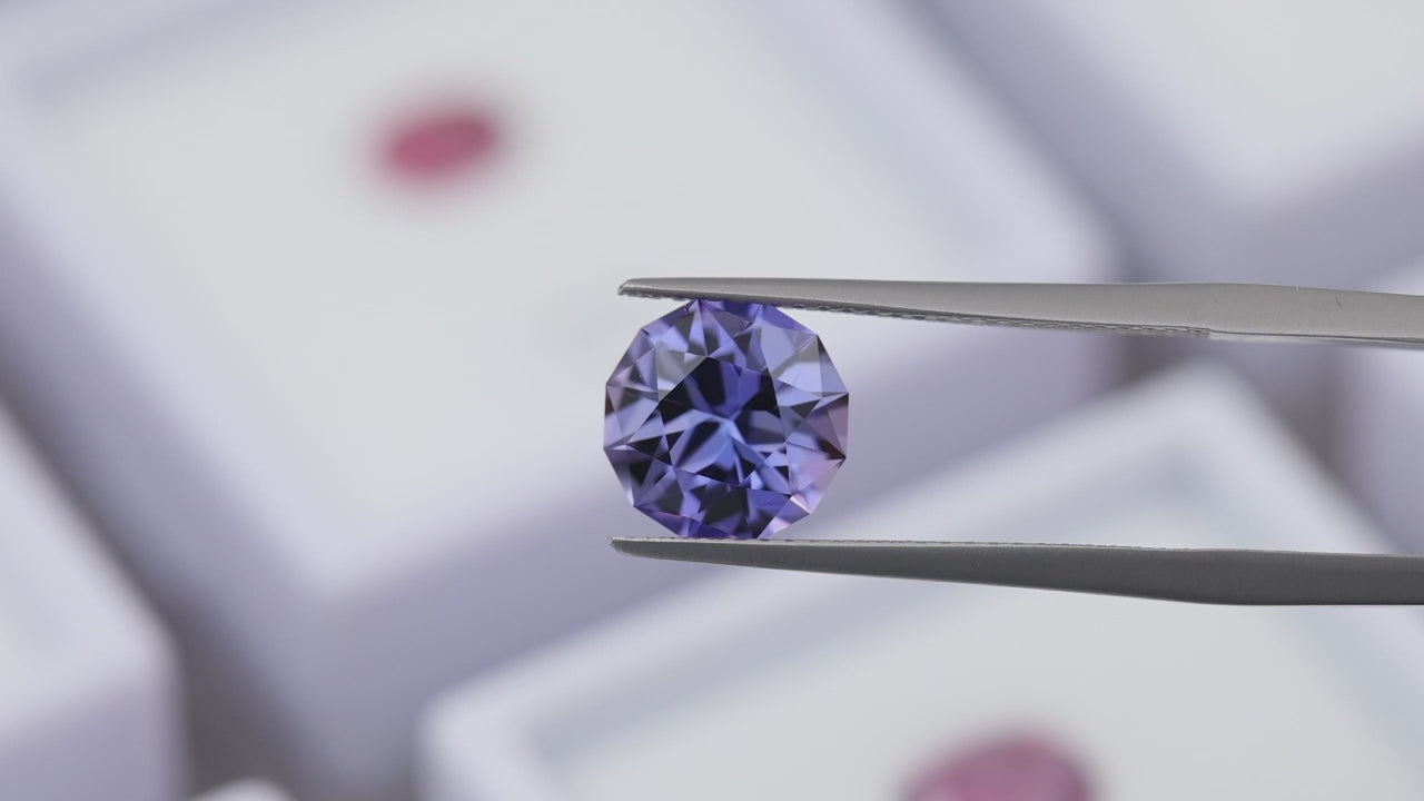 A finely precision-cut, unheated tanzanite in a modern round design.