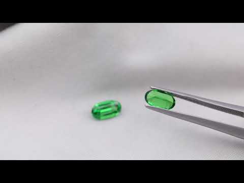 A pair of perfectly colored oval-cut tsavorites from Kenya.