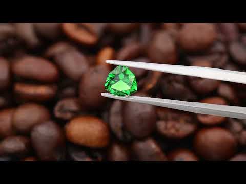 An exceptional tsavorite with perfect, intense saturation, precision cut into our contemporary trillion.