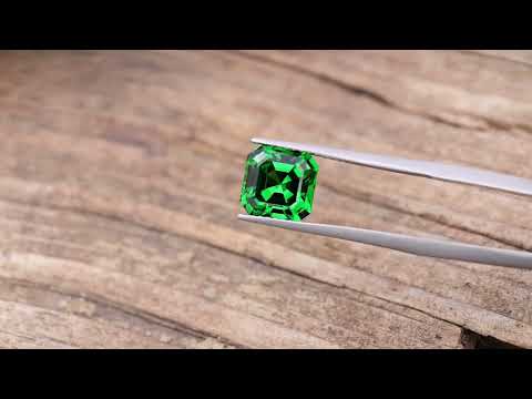 A top-quality tsavorite from Kenya, expertly cut in a flawless Asscher cut. This exceptionally rare gem weighs over three carats—a very uncommon size—combined with excellent cutting and clarity, making it an investment-grade stone.