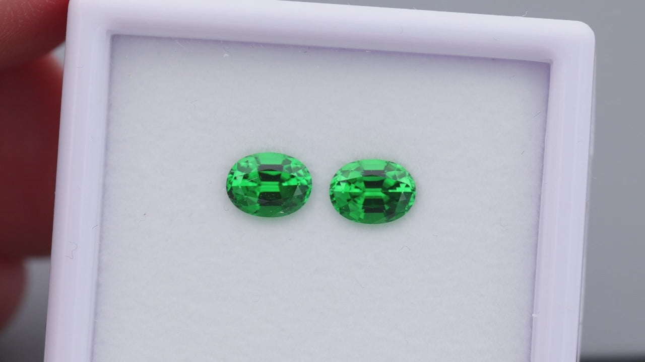 A pair of fine tsavorite ovals with precision-grade cutting and top color.