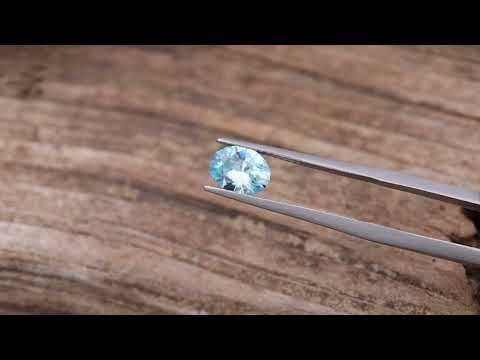 A fine light- to mid-blue zircon, cut in a contemporary oval.