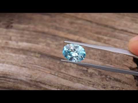 A finely colored, slightly bicolor blue zircon from Cambodia, cut in a contemporary oval.